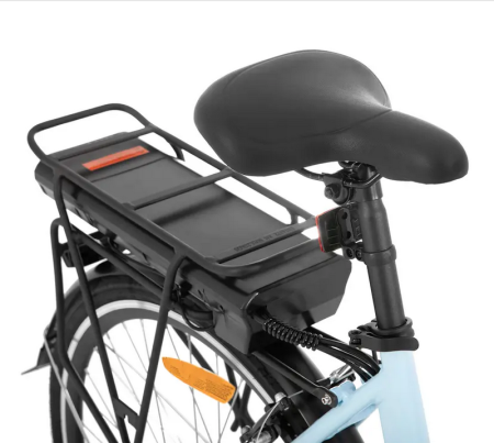 Rower jest wyposażony w baterię na tylnym bagażniku, zapewniającą niezawodne i stałe dostarczanie mocy;