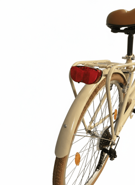 Dla jeszcze większej funkcjonalności, rower posiada wiele przydatnych akcesoriów, takich jak błotniki, bagażnik, podpórka, osłona łańcucha oraz oświetlenie LED, które zwiększa widoczność po zmroku. Dzwonek zaś umożliwi efektywne ostrzeganie innych uczestników ruchu.