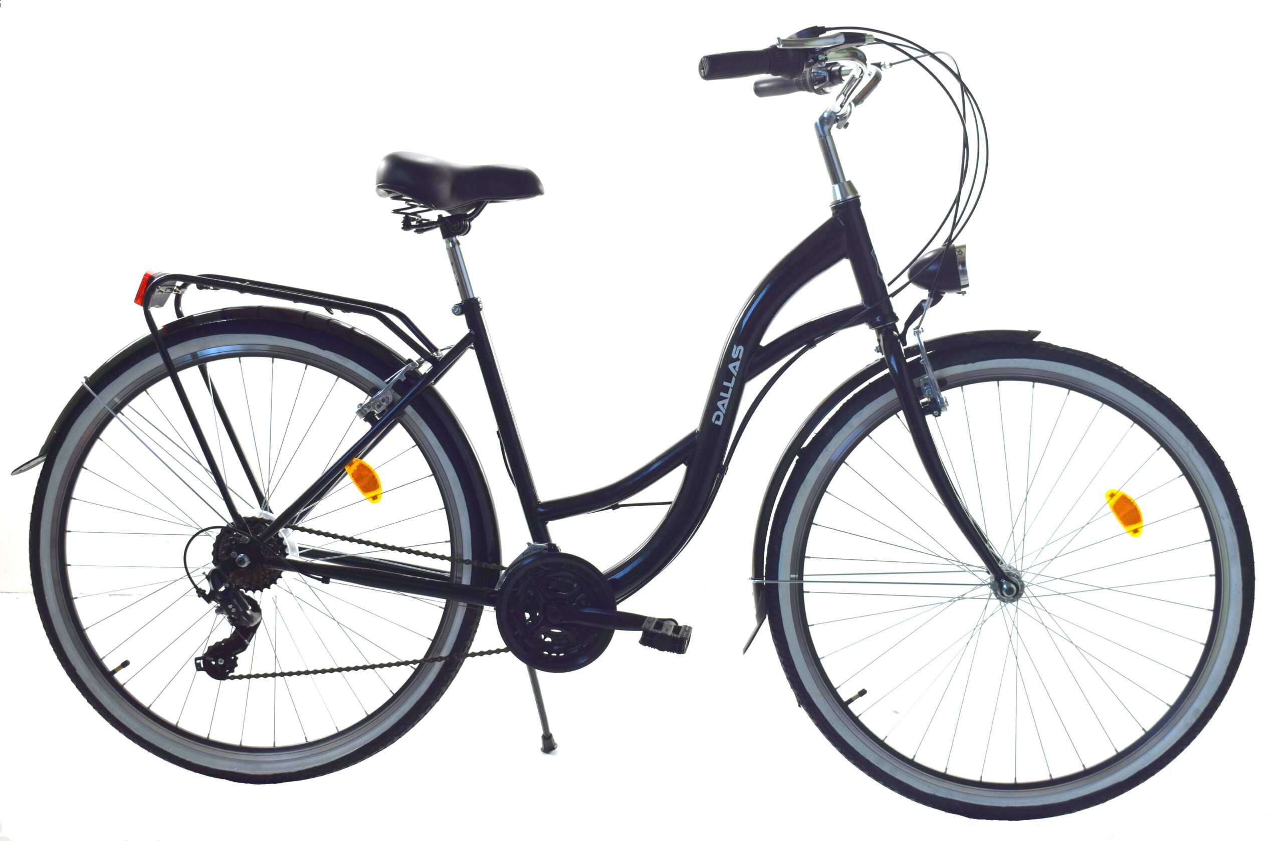 Rower Dallas City 28" 21spd to idealny wybór dla osób poszukujących komfortu i funkcjonalności w miejskim środowisku. Posiada stalową ramę o rozmiarze 19", co zapewnia trwałość oraz niezawodność. Wyposażony w stalowy widelec, ten rower oferuje doskonałe właściwości jezdne. Dzięki 21-biegowej przerzutce Shimano, każdy użytkownik może dostosować opór jazdy do swoich indywidualnych potrzeb, co czyni go idealnym rozwiązaniem zarówno na krótko- jak i długodystansowe podróże.