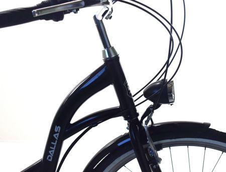 Zastosowane hamulce V-Brake zapewniają skuteczne hamowanie zarówno z przodu, jak i z tyłu, co zwiększa bezpieczeństwo podczas jazdy. Szerokie opony 28x1,75 gwarantują stabilność i komfort, zwłaszcza na miejskich drogach. W rowerze Dallas City nie zabrakło również licznych udogodnień, takich jak wygodne siodło na sprężynie, błotniki, bagażnik, podpórka, osłona łańcucha oraz oświetlenie LED, co czyni go wszechstronnym towarzyszem codziennych wypraw.