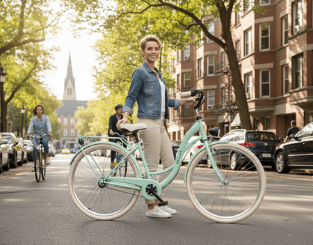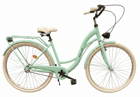 Opony o wymiarach 28x1,75 zapewniają komfort i bezpieczeństwo na miejskich nawierzchniach. Stalowa kierownica i wspornik kierownicy dają solidność, podczas gdy siodło na sprężynie sprawia, że każda przejażdżka jest przyjemnością. Kulowe pedały oraz dodatkowe wyposażenie, takie jak błotniki, bagażnik, podpórka, osłona łańcucha, oświetlenie LED oraz dzwonek, to elementy, które zwiększają funkcjonalność roweru.