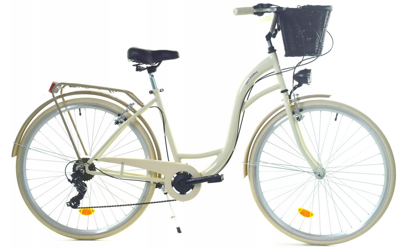 Wyposażenie: błotniki, bagażnik, podpórka, osłona łańcucha, oświetlenie LED, dzwonek, kosz wiklina