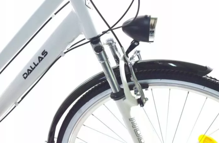 Dodatkowe akcesoria, takie jak błotniki, bagażnik, podpórka, osłona łańcucha oraz oświetlenie LED, czynią ten rower funkcjonalnym wyborem na każdą okazję. Siodło na sprężynie oraz tworzywowe pedały podnoszą komfort korzystania z roweru. Rower Dallas City Trekking Alu 28" 21spd to idealny towarzysz dla aktywnych osób, które cenią sobie jakość i niezawodność.