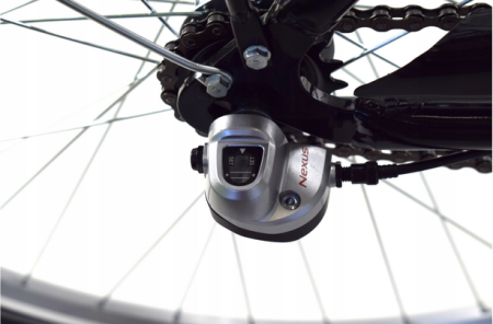 Model ten wyposażony jest w widelce amortyzowane, co zapewnia komfort jazdy na nierównych nawierzchniach. Trzybiegowa przerzutka Shimano Nexus 3 pozwala na płynne dostosowywanie prędkości do warunków drogowych, a manetka biegów Shimano umożliwia łatwe i szybkie zmiany.