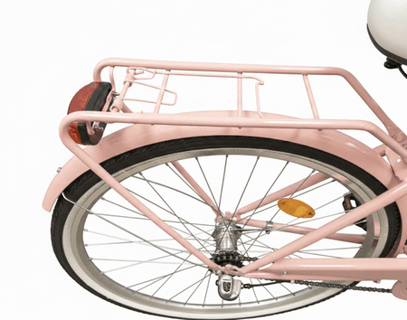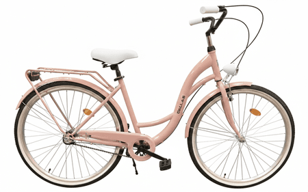 Opony o wymiarach 28x1,75 zapewniają komfort i bezpieczeństwo na miejskich nawierzchniach. Stalowa kierownica i wspornik kierownicy dają solidność, podczas gdy siodło na sprężynie sprawia, że każda przejażdżka jest przyjemnością. Kulowe pedały oraz dodatkowe wyposażenie, takie jak błotniki, bagażnik, podpórka, osłona łańcucha, oświetlenie LED oraz dzwonek, to elementy, które zwiększają funkcjonalność roweru.